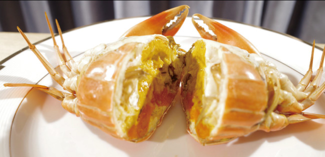 每逢炎夏,青母蟹會在產卵時棲身于淺灘河畔,在陽光的照射下,體內的蟹膏分解成金黃色的油脂,然后滲透到體內的各個部分,使得整只蟹晶瑩剔透、充滿黃油,因此被稱為黃油蟹。